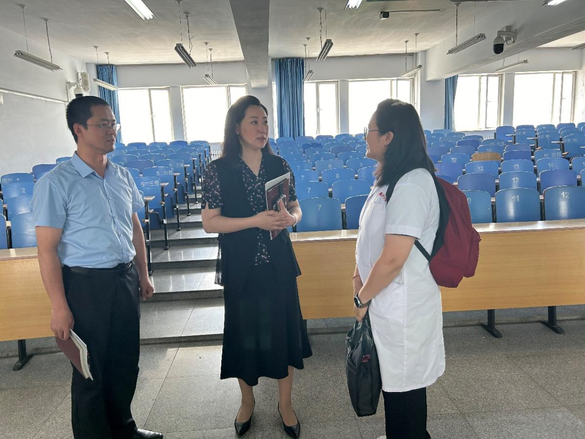 为不断提升学校本科教育教学质量,坚持以课堂教学为突破口,努力向课堂要质量,2024年6月13日上午,学校党委委员、副校长薛明明在金山校区授业堂203教室和303教室,分别听取了马克思主义学院刘洋睿讲师为2023级中医学1-3班,2023级中医康复学1班共159名学生讲授的《铸牢中华民族共同体意识》课程和基础医学院潘海婷副教授为2022级临床医学7-9班共120名学生讲授的《医学免疫学》课程。