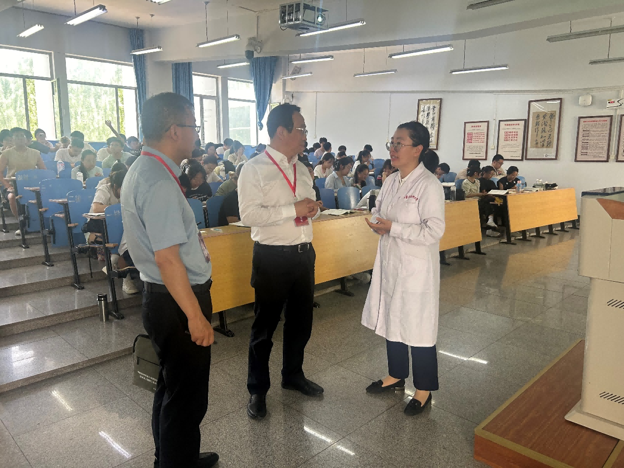 课堂上,鲁海文副校长与同学们一起认真听讲,深入检查了授课教师的教风、教学内容等情况,深入了解了学生的出勤、课堂纪律以及课堂参与度等情况。课间利用休息时间与任课教师进行了交流,对老师们的教学态度、教学内容、课堂教学组织等给予肯定,并鼓励老师更加注重理论授课与临床实践相结合,改进教学方法,让学生扎实掌握专业知识与技能,不断提升教学水平,为培养更多优秀的医学人才而努力。
