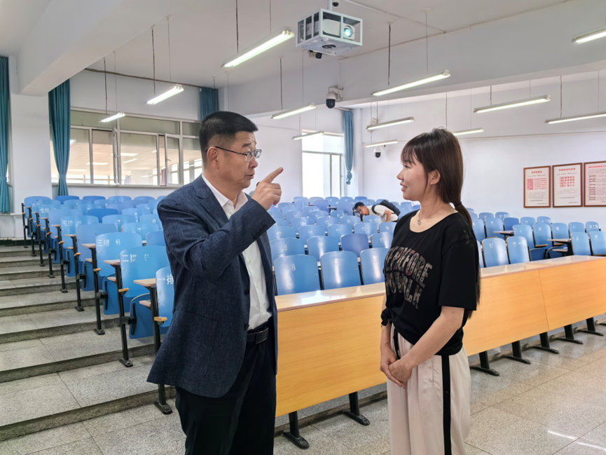 听课结束后,赵云山书记、校长与授课教师充分交流,积极肯定了授课教师扎实的理论功底和严谨的教学态度,鼓励授课教师认真钻研课程内容、授课方法,有效融入课程思政元素,调动学生学习的积极性和主动性,以高度的责任感和使命感为广大学生讲好每一堂课。