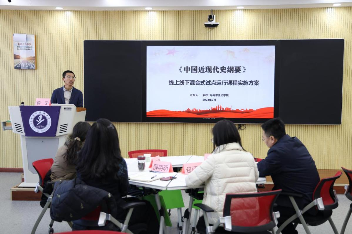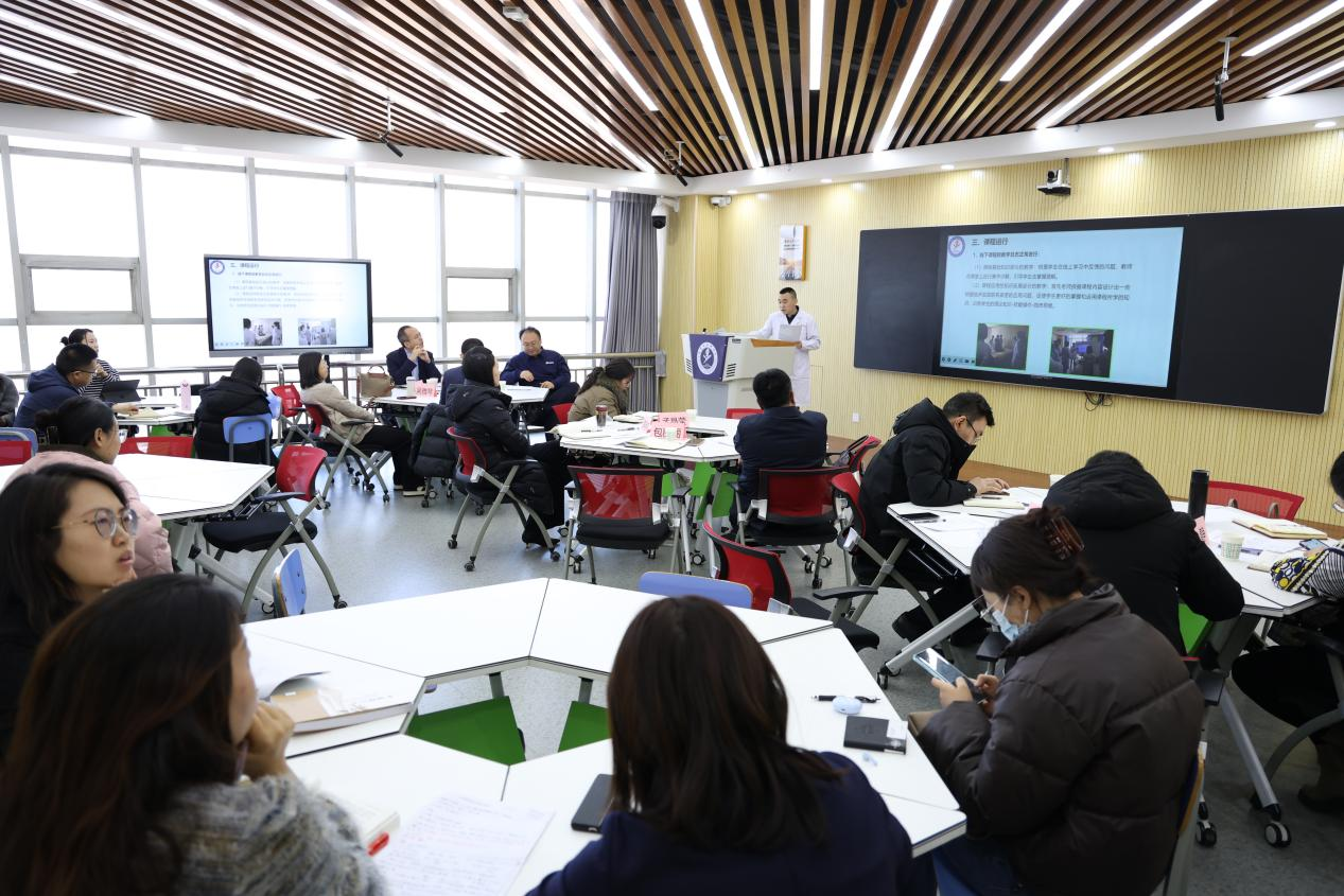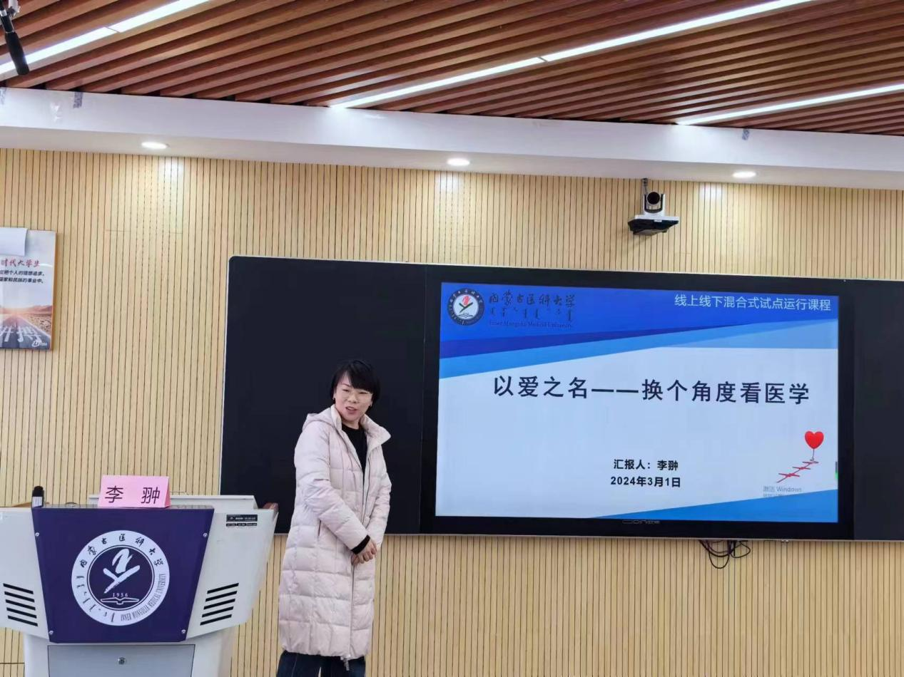 2023年度校级一流本科课程立项的线上线下混合式试点运行课程《运动系统疾病》《中国近现代史纲要》《蒙医外科学》《医学信息学》《以爱之名——换个角度看医学》负责人及团队成员分别对课程实施方案进行了汇报,相关学院的分管教学院长和2022年立项、2023年已经开展过一轮的线上线下混合式试点运行课程负责人与汇报人员进行了现场提问和深入交流,共同探索线上线下混合式教学实施的有效路径。