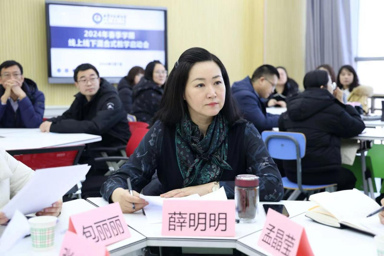 最后,学校党委委员、副校长薛明明进行了总结讲话,对2023年度立项的线上线下混合式试点运行课程的实施方案进行了点评,要求相关课程负责人进一步梳理实施方案,做好“减法”,细化教学过程中相关环节内容,做好线上教学的组织实施和过程性考核设计,确保线上线下混合式教学真正实施到位。
