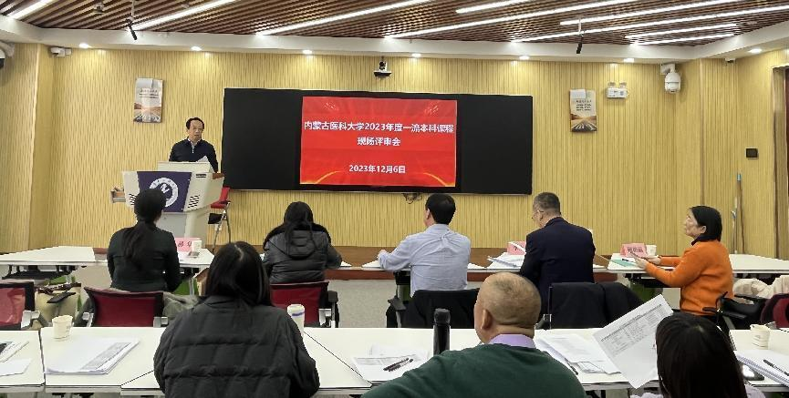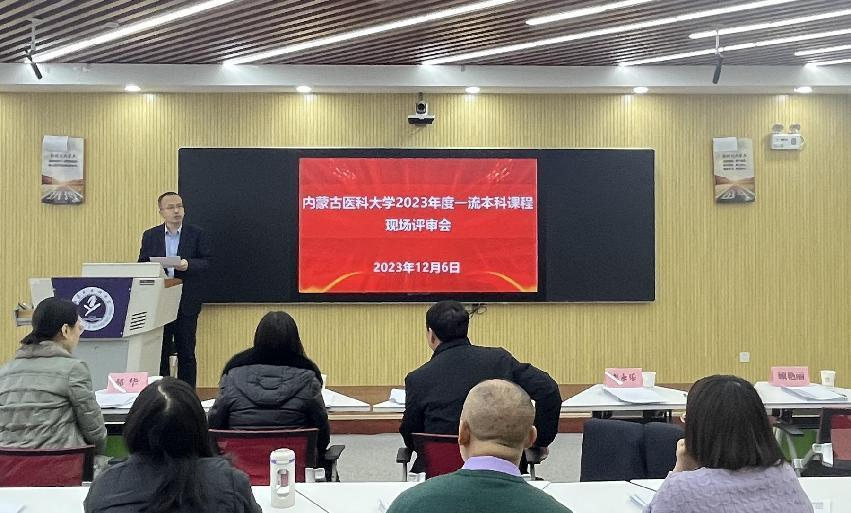 2023年12月6日,内蒙古医科大学在金山校区问学堂205召开了2023年校级一流课程评审会,对申报的线上线下混合试点运行课程和虚拟仿真实验教学课程进行了现场评审。学校党委委员、副校长鲁海文出席了本次评审会并讲话,学校教务处副处长李永乐主持了会议。