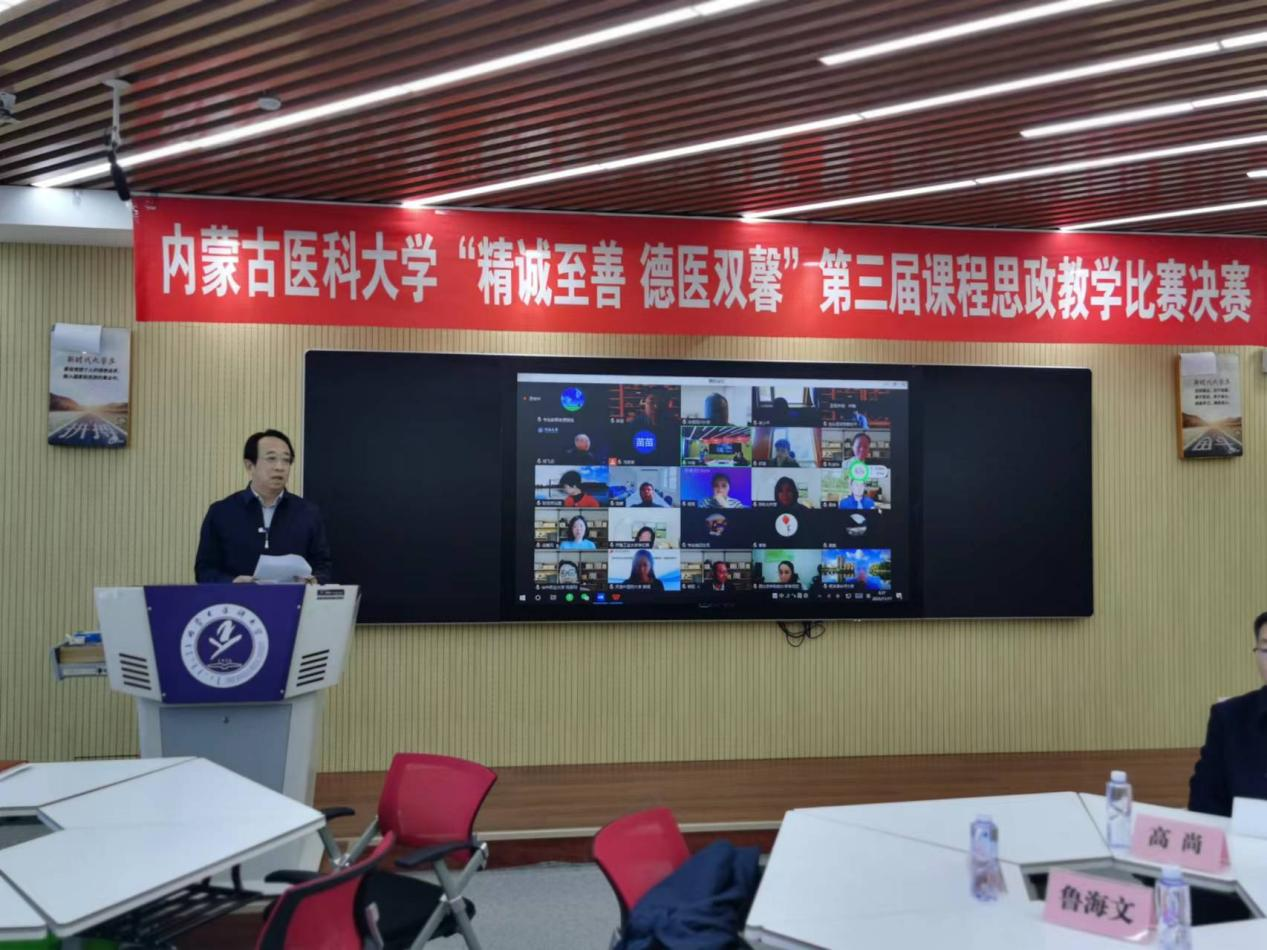 赛前,召开了内蒙古医科大学第三届课程思政教学比赛开幕式,教务处高尚副处长介绍了本次比赛的专家评委,学校党委委员、副校长鲁海文致开幕词并宣布比赛开始。