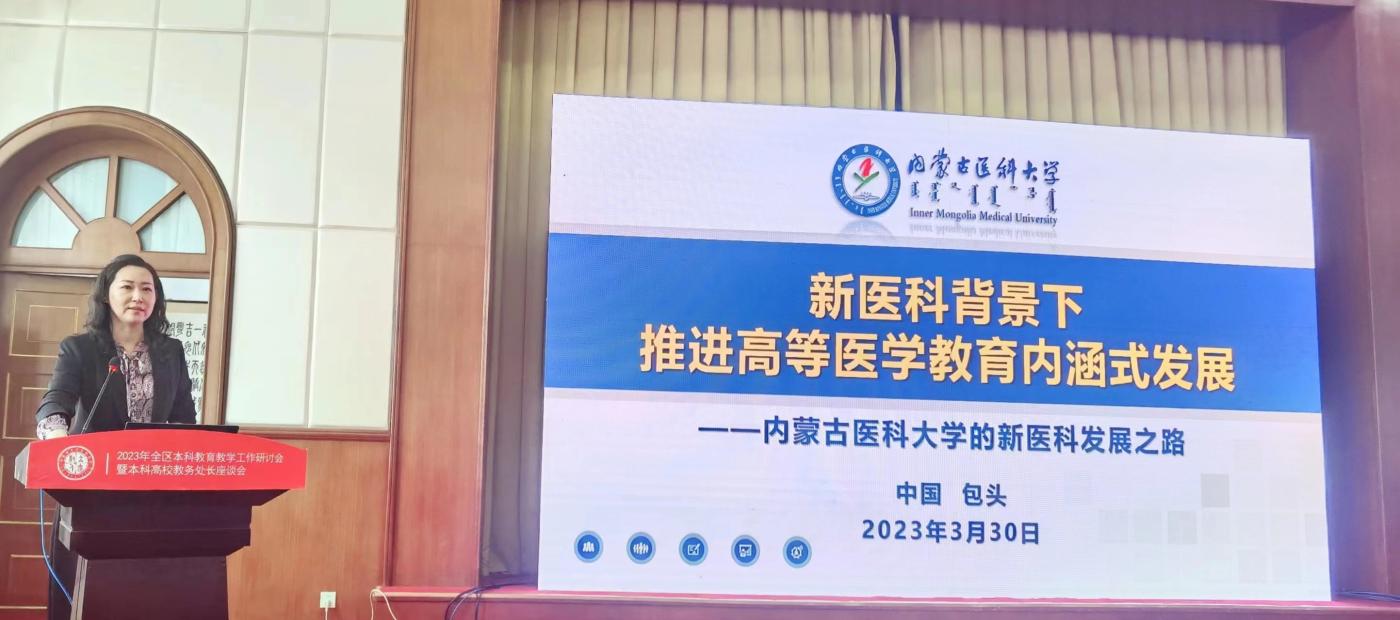 会议邀请大连理工大学原校长李志义作了题为《用新理念引领本科教育教学改革》的专题报告。随后内蒙古大学、内蒙古科技大学、内蒙古工业大学、内蒙古农业大学、内蒙古医科大学、呼伦贝尔学院教务处负责人针对本校本科教育教学建设发展情况依次作了汇报。学校教务处处长薛明明代表内蒙古医科大学做了《新医科背景下推进高等医学教育内涵式发展——内蒙古医科大学的新医科发展之路》的报告。