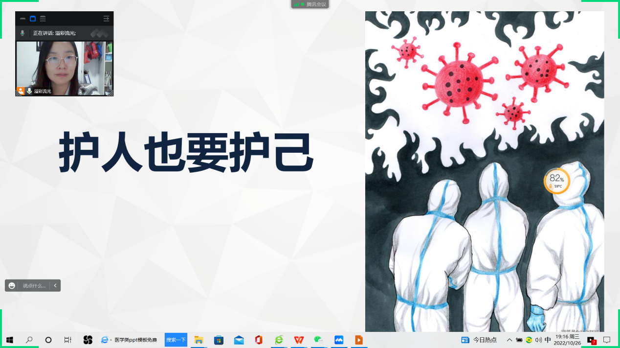 思政育人,也是育己的过程。生命是最宝贵的,从事卫生事业的人不仅要有过硬的专业知识和技能,更要有内化于心的职业道德。疫情当前,医学生要有关注、有思考、有行动,做好科学防护,积极发展自我。