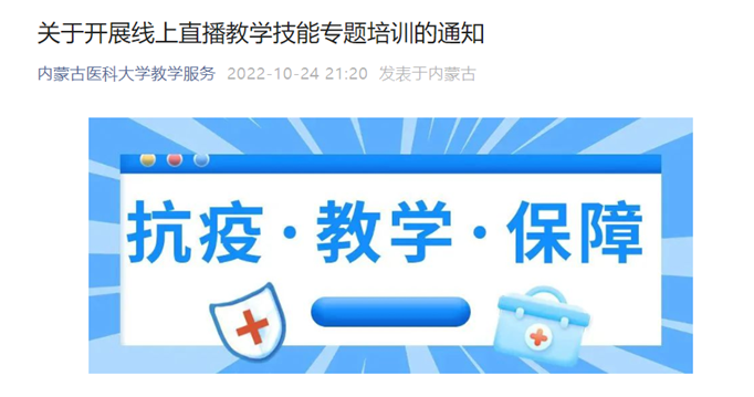 2022年10月29日上午,学校教务处举办了网络教学平台线上直播教学技能专题培训,为线上教学保驾护航。本次培训以线上直播的方式开展,各教学单位(临床医学院、附属医院、教学医院)教学管理部门工作人员、教学秘书及教师共2200余人线上参加了培训。