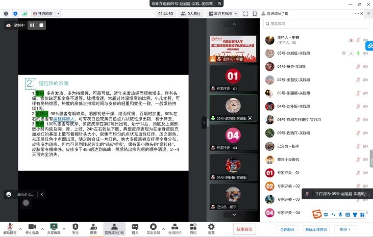 2022年10月4日,内蒙古医科大学第二届课程思政教学比赛决赛圆满完成。受疫情影响,本次比赛利用腾讯会议平台在线上举行。经各教学单位选拔推荐,教务处审核通过,共有34位教师参加了此次决赛,并根据所授课程的学科特点分为专业教育类课程组、公共基础类课程组和实践类课程组。三个组别的比赛在线上同步进行。