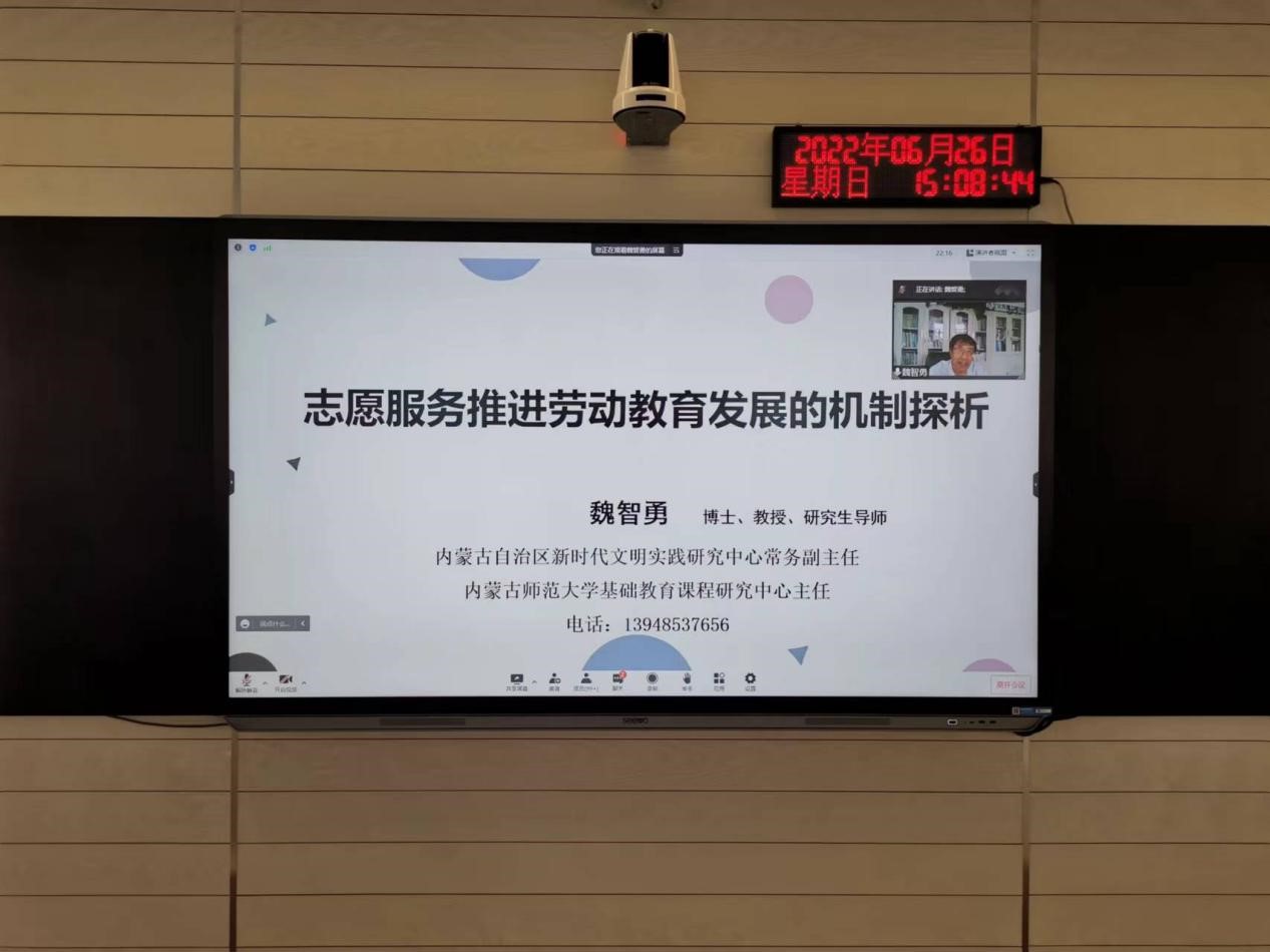 内蒙古自治区新时代文明实践研究中心常务副主任魏智勇教授做了题为《志愿服务推进劳动教育发展的机制探析》的报告。探讨了志愿服务和劳动教育发展的相互关系及有机结合,并提出了多管齐下,建立完善志愿服务劳动教育机制。