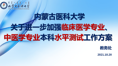 接下来,教务处处长薛明明就坚持以考促学、以考促教、以考促改的工作目标,详细解读了学校教务处制定的“内蒙古医科大学关于进一步加强临床医学、中医学专业本科水平测试工作方案”及“内蒙古医科大学关于临床医学类、口腔医学、中医学本科专业实施‘三段式’综合考试改革的实施方案”。