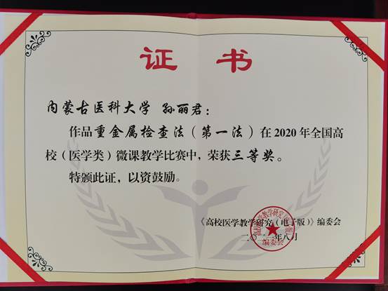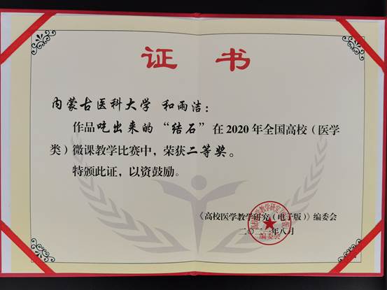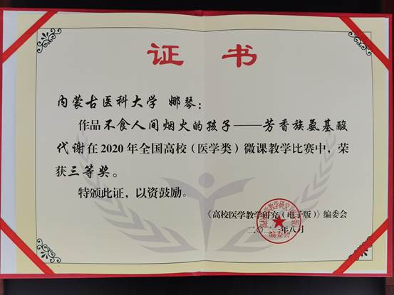 该项比赛由教育部与《高校医学教学研究(电子版)》杂志联合举办,旨在提升课程教师专业发展和教学能力,顺应信息技术与教育教学深度融合的趋势,推动教学模式改革和教学质量持续提高。