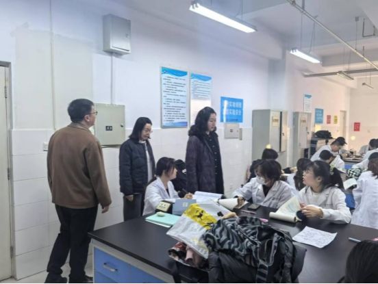 薛明明副校长实地考察了公共卫生学院的预防医学实验中心、卫生检验与检验实验中心教学实验室、卫生统计学教学机房等教学场所,详细了解了本科教学实验课程的组织情况、实验室建设情况、本科实验教学台账以及实验室环境等。经调研,公共卫生学院实验教学管理体系较规范,实验教学环境整洁,相关台账记录完整。