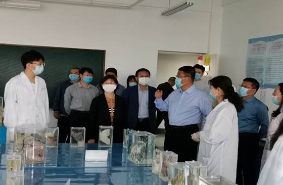 赵云山校长认真听取了学校实验课教学开学复课情况,实地查看了基础医学院实验室管理情况、实验课教学准备情况、实验课开展情况,并与正在上课的医学微生物学实验、形态学实验的老师、同学们进行了亲切的交流,对我校实验课教学提出了意见和建议。