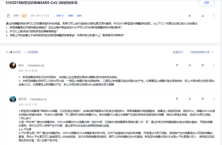 3.混合式教学:在教学过程中将伟大抗疫精神和使命担当等经典案例与课程基本内容相融合;把创新精神加入到药物研究的思维中,依托“超星学习通”教学平台开展混合式教学,在课前、课堂和课后持续开展教学活动。