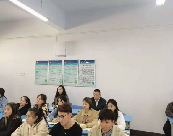 2021年3月22日下午,在金山校区南楼308教室,学校党委副书记、校长赵云山在教务处薛明明处长的陪同下听取了马克思主义学院承担的《铸牢中华民族共同体意识》课程。本节课程由哈斯木其尔老师主讲,上课学生来自2020级蒙医学、蒙药学、护理学(蒙医方向)专业。赵云山校长聚精会神听取了授课教师的讲课内容,认真做了听课记录。课程结束后赵校长与授课教师做了亲切交谈,肯定了授课教师的基本功,勉励教师提高站位,深挖课程内涵与精髓,讲深、讲透本门课程。