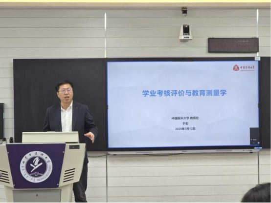 于宏教授以“学业考核评价与教育测量学”为主题阐述了如何科学、公正地对学生进行学业考核,探讨了教育测量学基本原理及其在实际应用中的挑战和策略,并指出通过科学运用教育测量学原理,可以构建更加客观、公正的评价体系,更准确地反映学生的真实能力和水平。