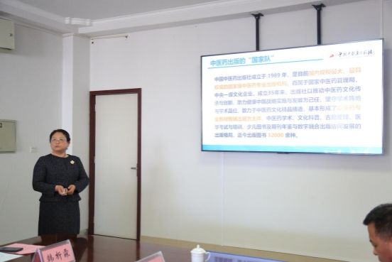 芮立新副总编辑简要介绍了中国中医药出版社的发展现状、业务范围、教材建设以及在中医药教材出版领域的优势与规划。她提到,深入院校调研是精准把握教学实际需求、推动教材改革的关键举措,随着中医药事业的蓬勃发展,对教材的创新性、实用性和科学性提出了更高要求,希望能与我校建立长期深入的合作关系。