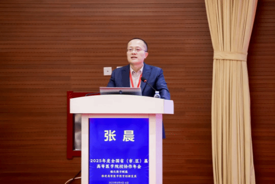 我校党委副书记、校长张晨作了题为“以本为本,守正创新——书写北疆高等医学教育高质量发展新篇章”的主旨报告,分享了我校在专业布局优化、培养模式创新、教学数智化改革等方面的建设经验。