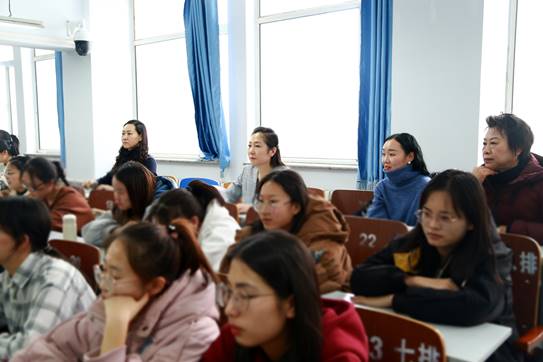 2019年12月24日下午,在金山校区南楼204教室,学校党委书记乌兰在教务处、马克思主义学院工作人员的陪同下听取了马克思主义学院的闫瑜老师为2019级临床专业、2019级康复治疗专业、2019级英语专业学生上的《形式与政策》课程。听课过程中,乌兰书记聚精会神听取了授课教师的讲课内容,认真做了记录;课程结束后,乌兰书记与授课教师就教学方法、课堂教学效果等进行了交流。