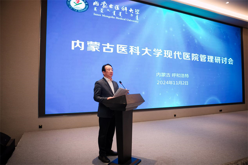 学校党委书记、校长赵云山致辞。他指出,学校与各直属附属医院历来唇齿相依、融合发展,这是学校办学的优良传统和成功经验。多年来,各直属附属医院在医学教育和医疗服务中发挥着重要的作用,是学校培养高素质医学人才不可或缺的临床实践阵地。而在当前的医疗形势下,进一步规范好对各直属附属医院的管理,实现学校与各直属附属医院的资源共享、优势互补十分必要。他强调,学校此次召开现代医院管理研讨会,旨在进一步树立先进的管理理念,优化资源配置,引入科学的管理方法和工具,提升医院管理水平,统筹推动校院协同发展。希望各直属附属医院的管理者能够坚守初心、牢记使命,进一步优化医院运营管理,建立健全现代医院管理制度,共同促进各直属附属医院更好更快发展,为推动自治区医疗卫生健康事业建设发展贡献“内医大”力量。